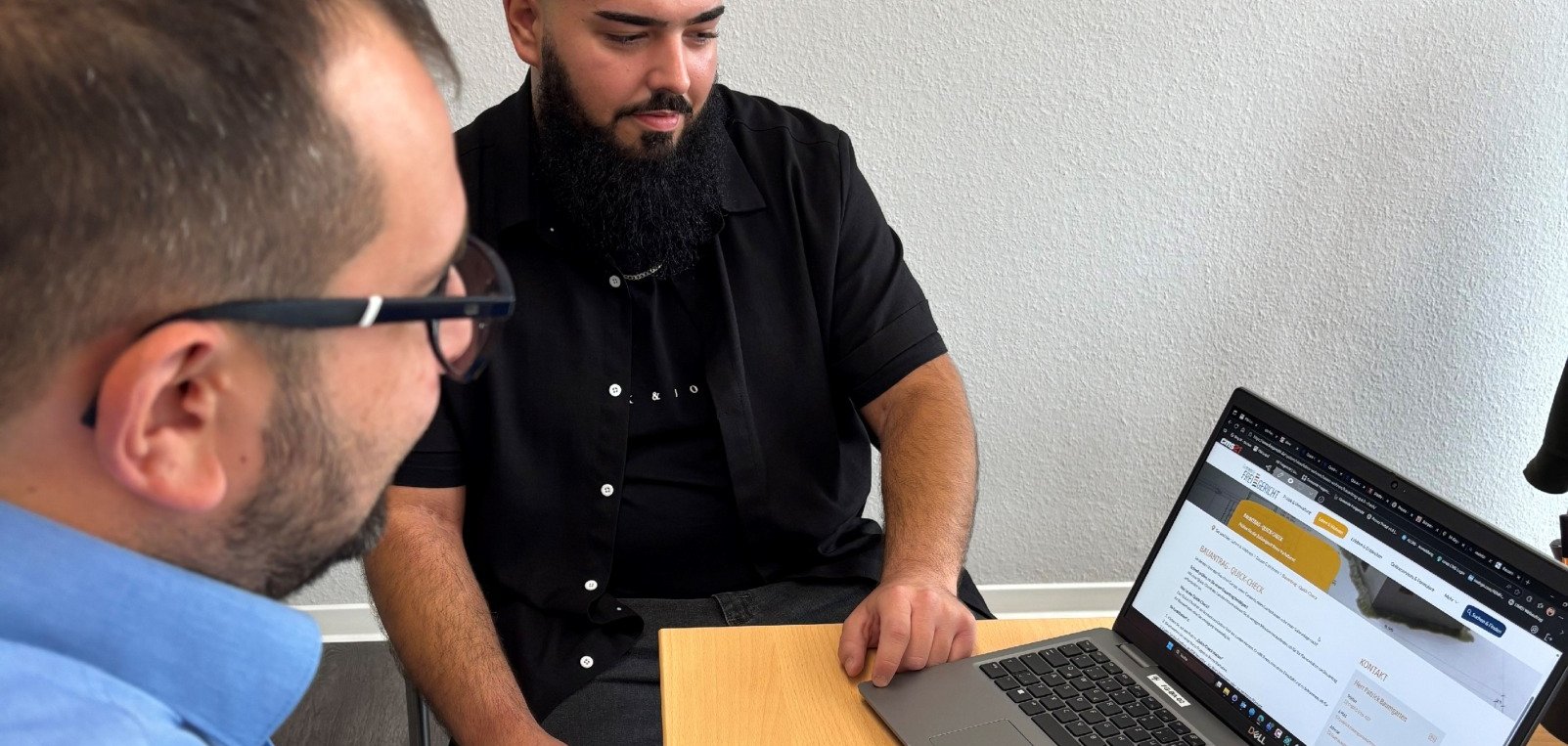 Das Foto zeigt einen aufgeklappten Laptop, auf dessen Tastatur eine gefaltete Zeitung liegt.