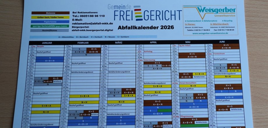 Verteilung des Abfallkalenders 2026 der Gemeinde Freigericht