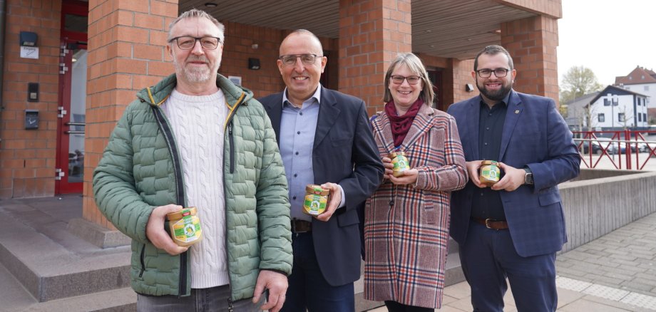 Walter Vorreiter, Imker und Vorsitzender des Freigerichter Imkervereins, freute sich, 22 Gläser Freigerichter Honig der Sorten Sommerblüte und Blütenhonig zu übergeben. „Eine wunderbare Tradition - herzlichen Dank für ihr Engagement im Naturschutz und für diese großzügige Spende, über die sich unsere Kita-Kinder ganz sicher freuen werden. Kindern schon früh das Zusammenspiel in der Natur zu vermitteln und dabei den Bezug zu unserer Region herzustellen ist eine tolle Initiative“, so Bürgermeister Waldemar Gogel. Diesem Dank schlossen sich Ordnungsamtsleiter Peter Betz und Sandra Hein von der Kita-Verwaltung an: „Die Kinder bekommen durch diese Spende ein Bewusstsein dafür, wie wichtig die Bienen für unsere Natur sind.“