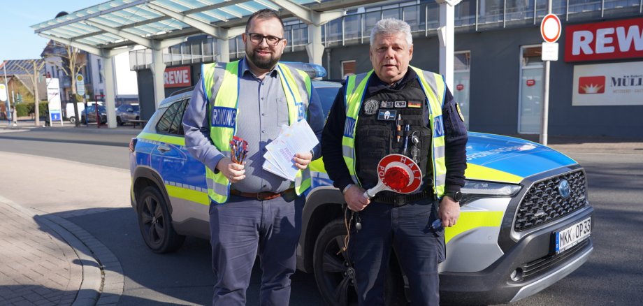 Die kontrollierten Verkehrsteilnehmerinnen und Verkehrsteilnehmer hielten sich ausnahmslos an die geltenden Verkehrsregeln und zeigten ein umsichtiges und verantwortungsbewusstes Verkehrsverhalten, wie Ordnungspolizist Karl Ruzsicska zufrieden zusammenfasste. Dieses positive Ergebnis wurde direkt vor Ort belohnt. Bürgermeister Waldemar Gogel, der die Ordnungspolizei bei der Aktion unterstütze, überreichte einen Dankesflyer sowie einen kleinen Schokohasen-Lolli. „Unsere österliche Verkehrskontrolle soll nicht nur ein Zeichen der Wertschätzung sein, sondern zugleich für ein respektvolles Miteinander im Straßenverkehr sensibilisieren“, so der Bürgermeister.